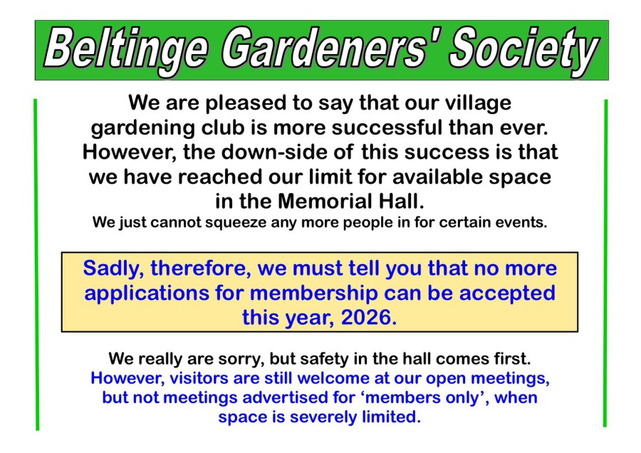 Meetings where non-members will not be admitted are - the AGM in October and the Christmas Party in December.
